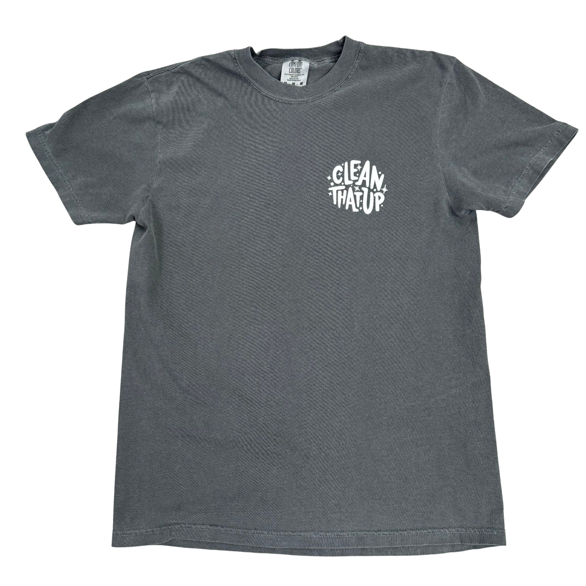 Unleash your inner cleaning hero with the “Cleaning Is My Superpower” T-Shirt from Clean That Up! This charcoal black Comfort Colors® shirt features Spritzy superhero on the back and a clean, minimalist Clean That Up logo on the front left chest.