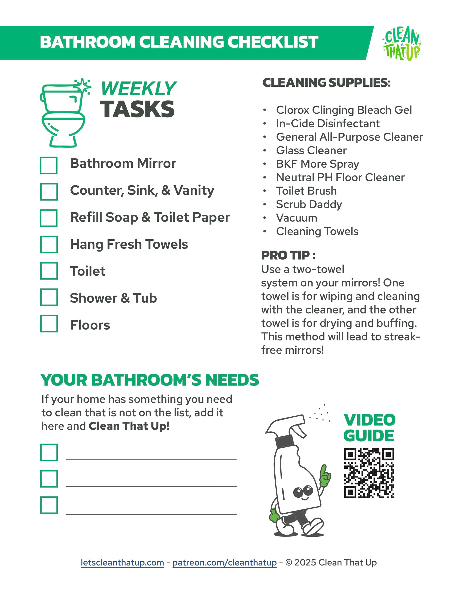 A clean bathroom is essential to keep your home smelling fresh and clean! This Weekly Bathroom Cleaning Checklist helps you stay on top of essential tasks with an easy-to-follow, step-by-step guide. Whether you’re tackling daily messes or deep-cleaning high-use areas, this printable PDF keeps you organized and stress-free.